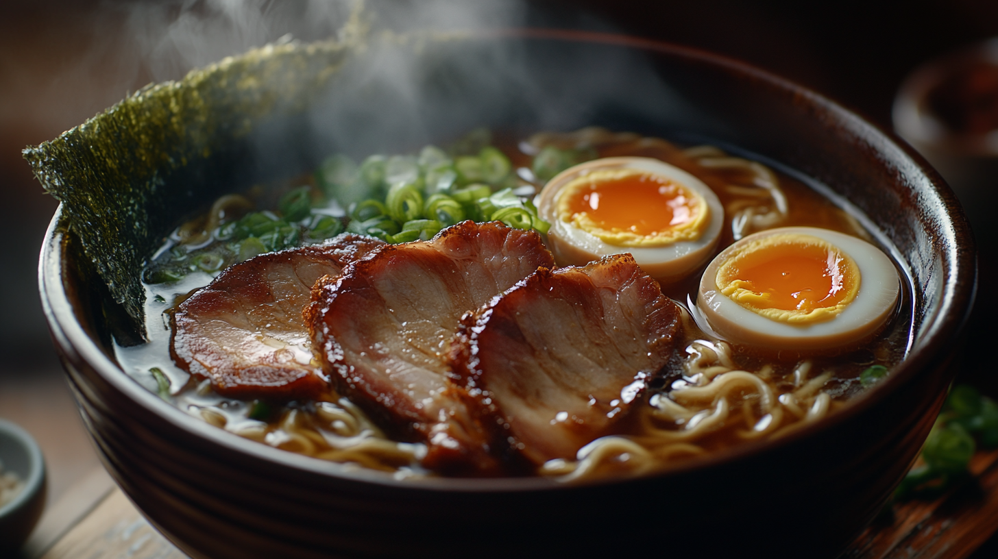 Une symphonie de saveurs vous attend dans ce bol de ramen authentique, où le porc caramélisé se marie délicatement avec un bouillon riche et des...