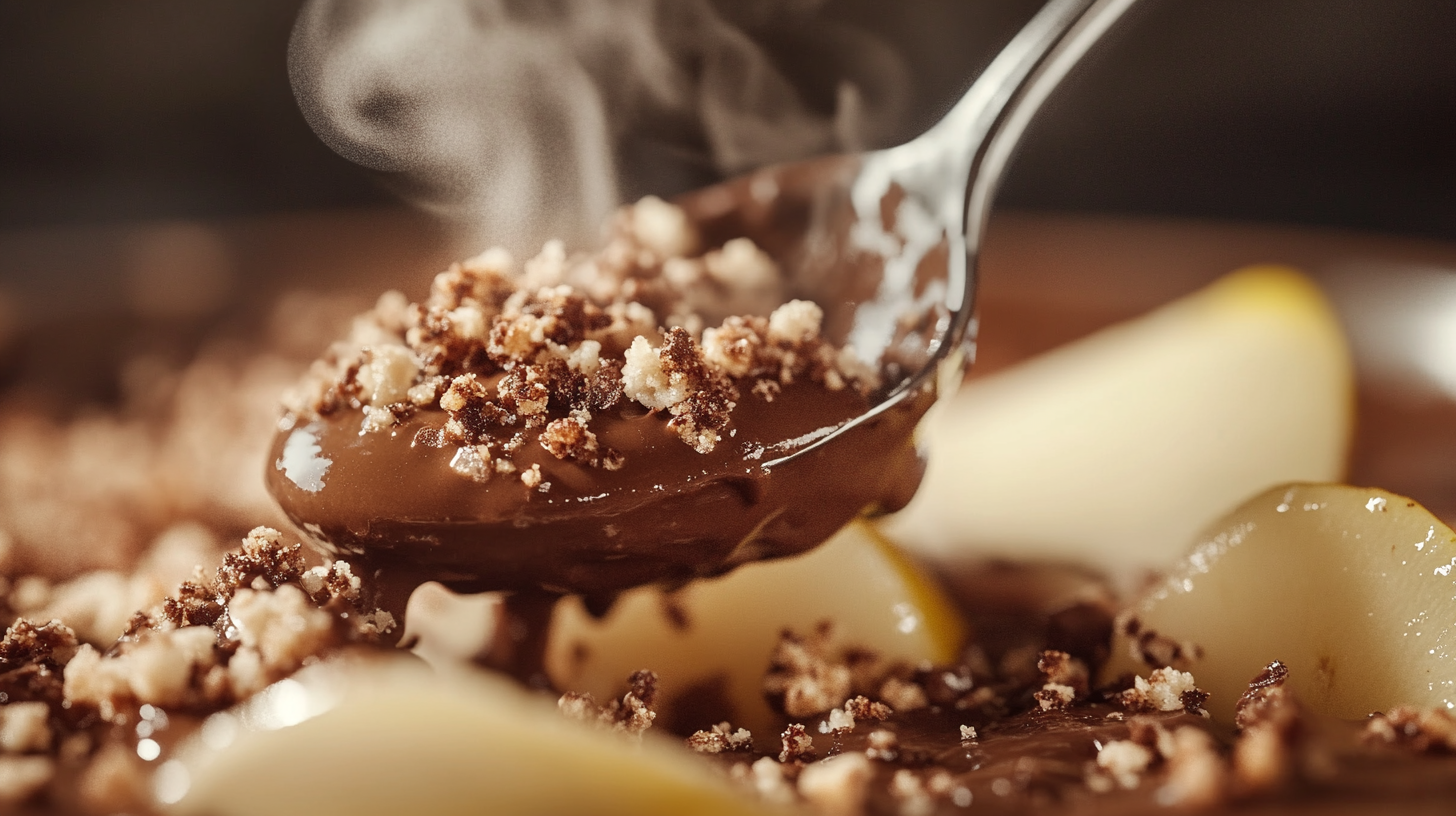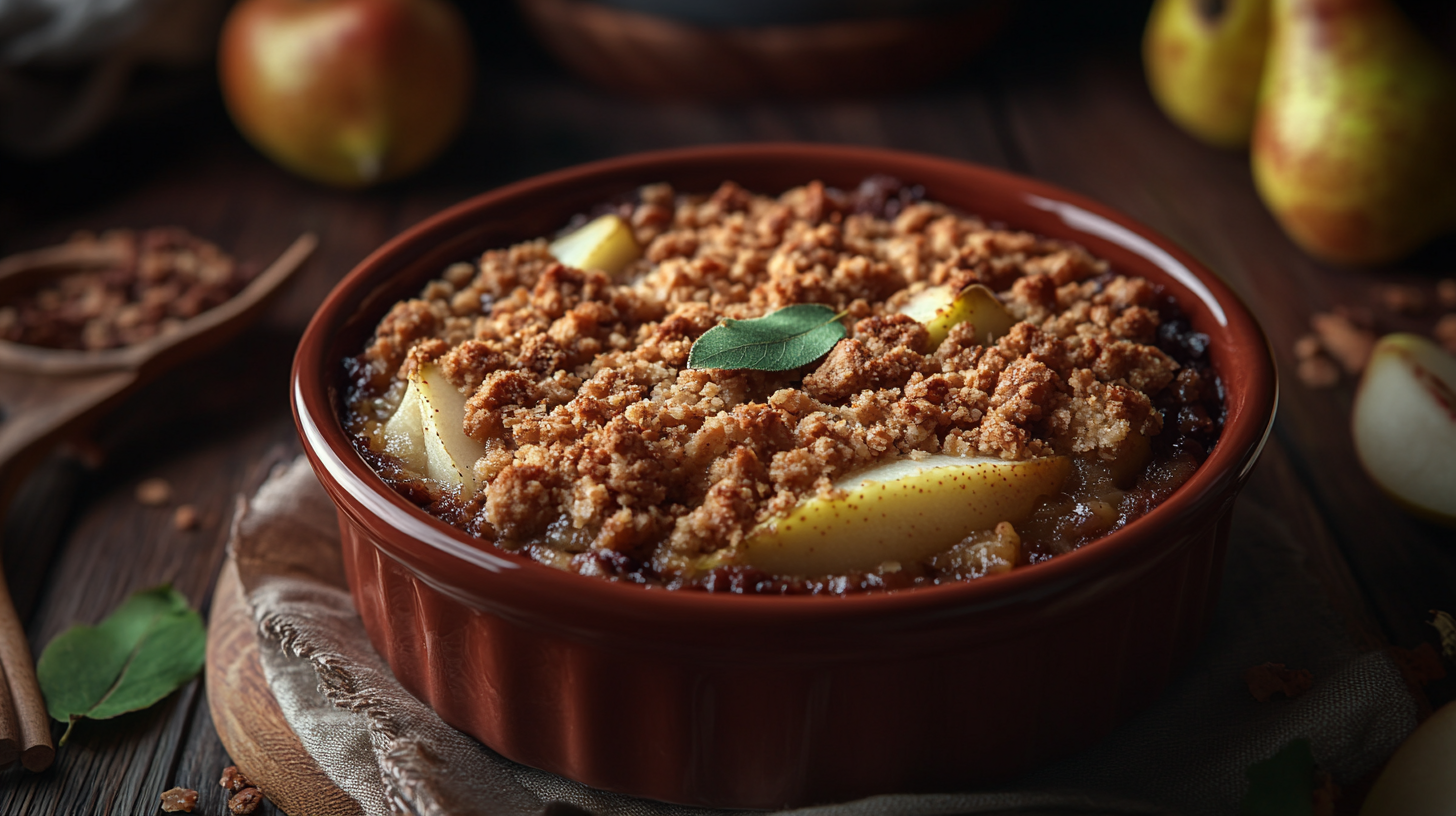 Imaginez le mariage parfait entre la douceur fondante des poires et l’intensité du chocolat noir, le tout enveloppé dans un croustillant de noisettes dorées. Notre crumble aux poires et chocolat noir est une ode aux saveurs automnales, un dessert qui réchauffe l’âme et éveille les papilles.