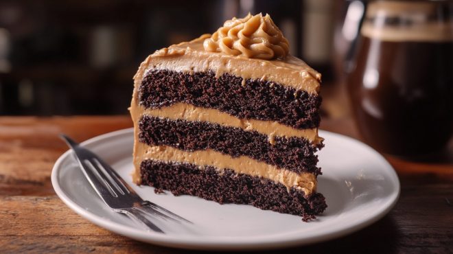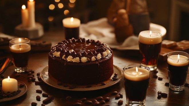 Servez cette Symphonie Chocolatée sur un élégant plateau en ardoise ou en bois sombre pour mettre en valeur ses teintes riches. Garnissez le dessus du gâteau de copeaux de chocolat noir ou saupoudrez-le délicatement de cacao en poudre pour une touche finale sophistiquée. Pour une expérience gustative complète, accompagnez chaque part d’une petite dégustation de la bière stout utilisée dans la recette, servie dans un verre tulipe pour en apprécier pleinement les arômes.