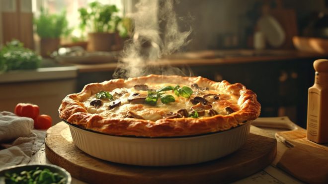 - Pour une touche de fraîcheur, incorporez quelques feuilles d’estragon frais finement ciselées juste avant de fermer la tourte.