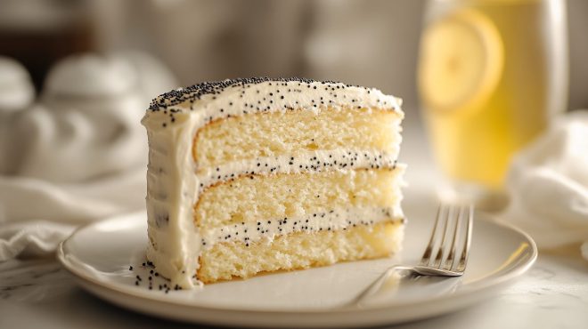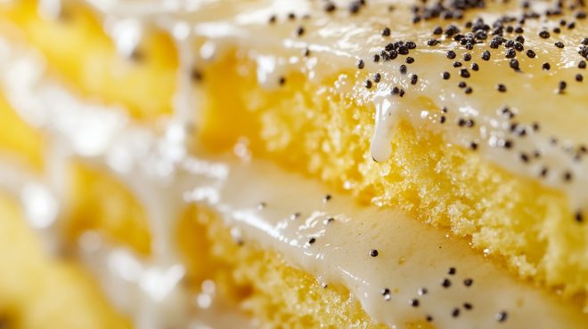 - Finition et présentation : Laissez le glaçage se figer légèrement avant de servir. Pour une touche finale, parsemez quelques graines de pavot supplémentaires sur le dessus du gâteau.