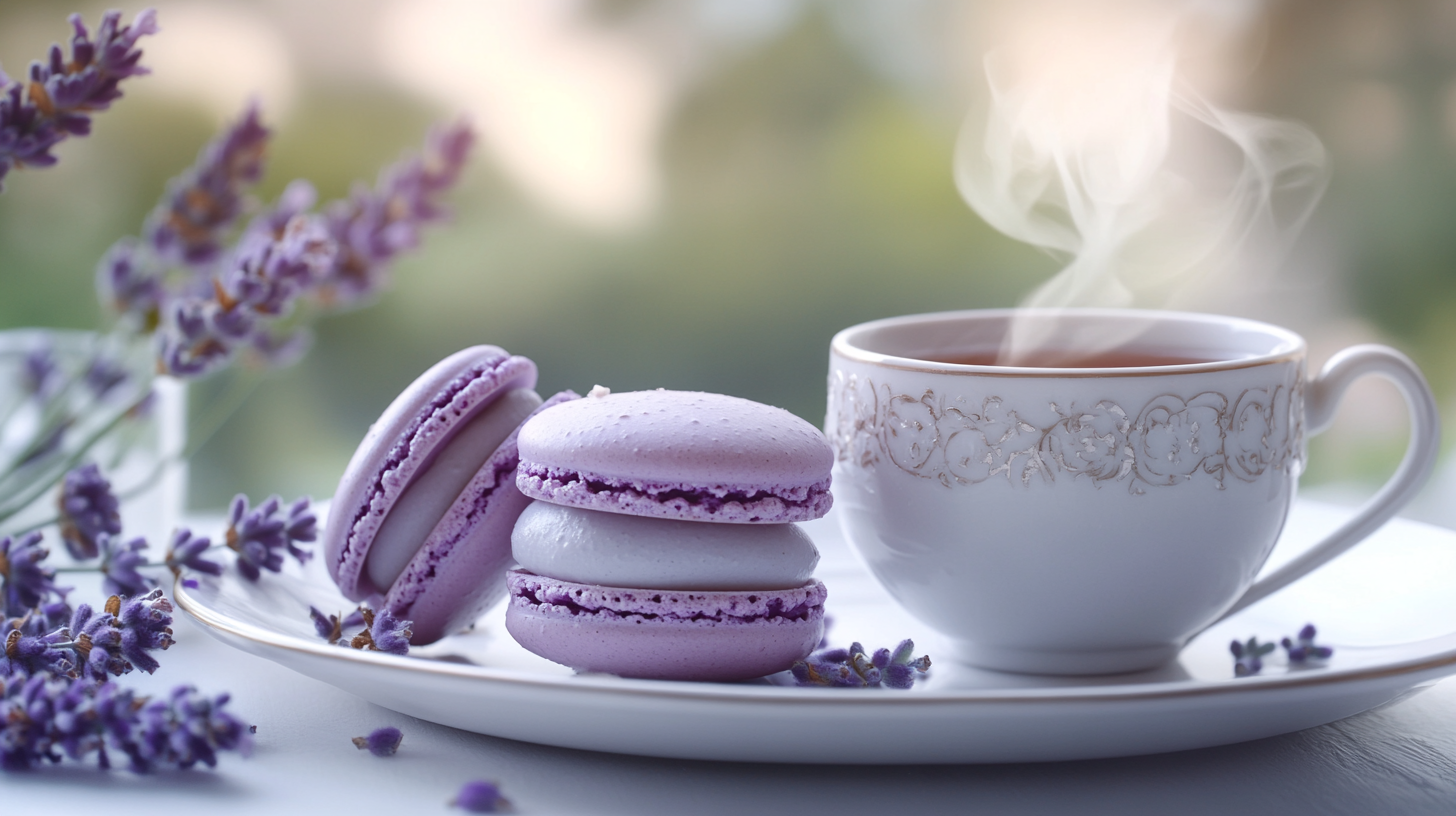 Laissez-vous transporter dans les champs de lavande de Provence avec ces macarons délicats, où la douceur du miel se marie à la subtilité florale de la lavande. Cette recette allie technique française et saveurs méditerranéennes pour créer un dessert aussi beau que délicieux.