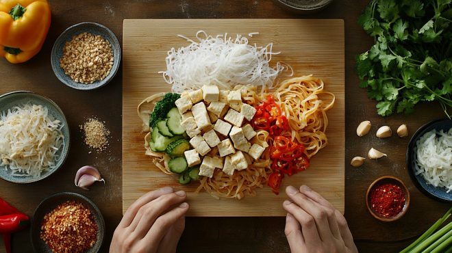 Ce Pad Thai Végétalien se déguste idéalement dès sa préparation, quand les nouilles sont encore chaudes et que les légumes conservent leur croquant. Pour une expérience gustative complète, accompagnez-le d’une salade de papaye verte râpée et de quelques tranches de mangue fraîche. Bon appétit et savourez ce voyage culinaire sain et délicieux !
