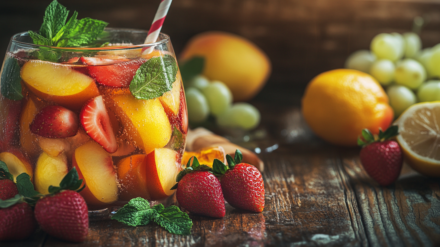 Plongez dans l’été avec notre recette de sangria blanche aux fruits d’été. Cette version légère et fruitée de la célèbre boisson espagnole ravira vos papilles et impressionnera vos invités. Parfaite pour les chaudes journées d’été, cette sangria est un mélange harmonieux de vin blanc, de fruits juteux et d’une touche de pétillant.