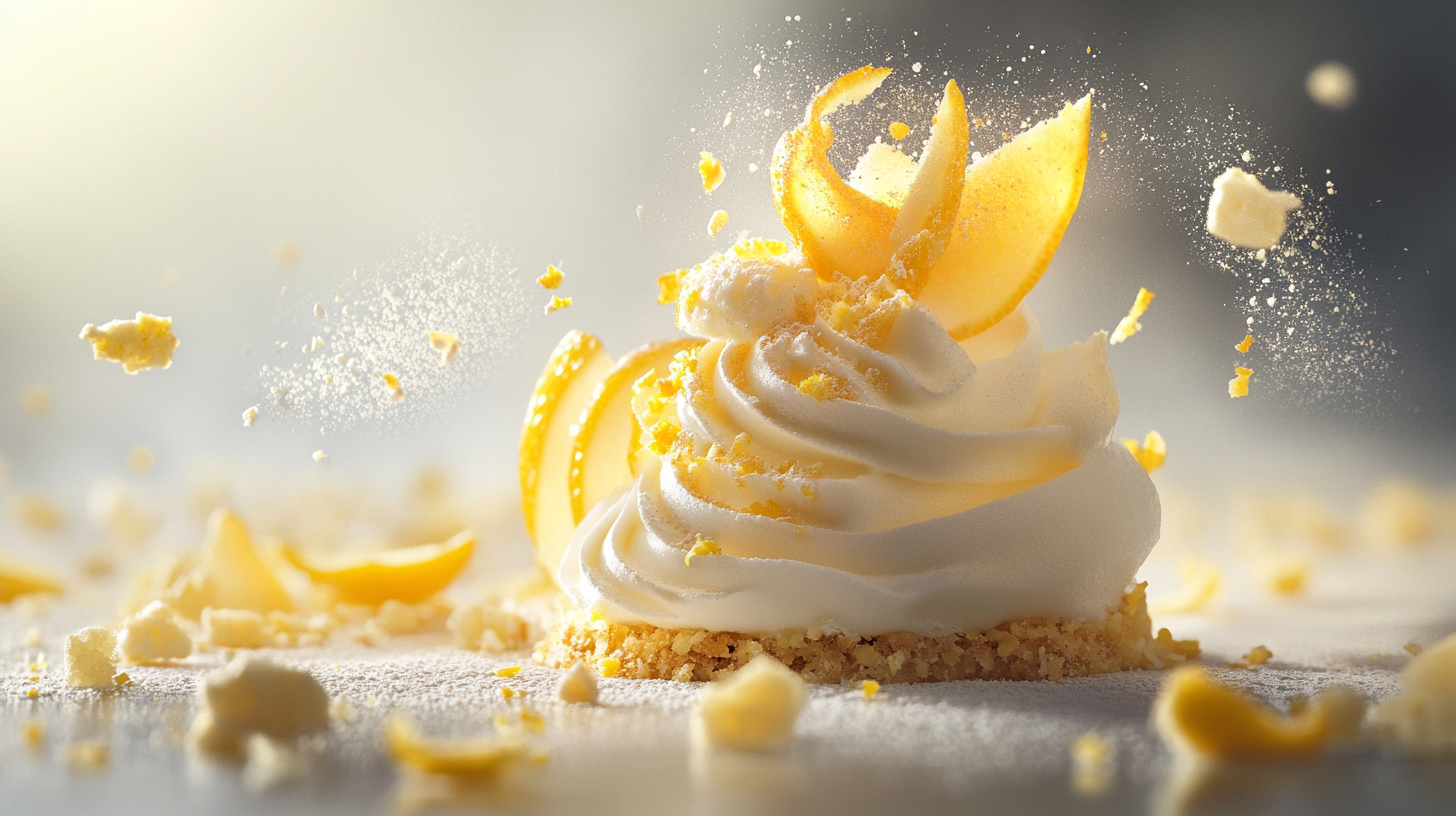 - Dressez l’assiette : Disposez harmonieusement des quenelles de crème au citron, des morceaux de sablé brisés et des pointes de meringue italienne.